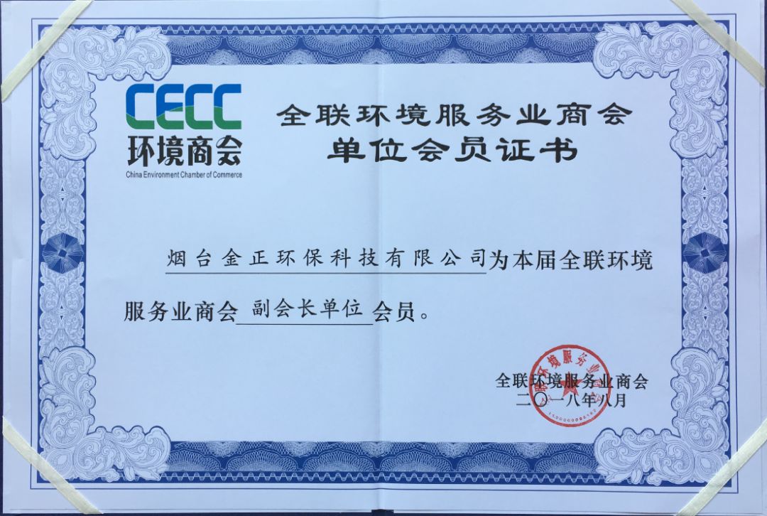 煙臺金正環??萍加邢薰居?018年8月27日,在同一天獲得“山東省碟管式反滲透膜工程實驗室”認定并被評為“全國工商聯環境服務業副會長”單位。